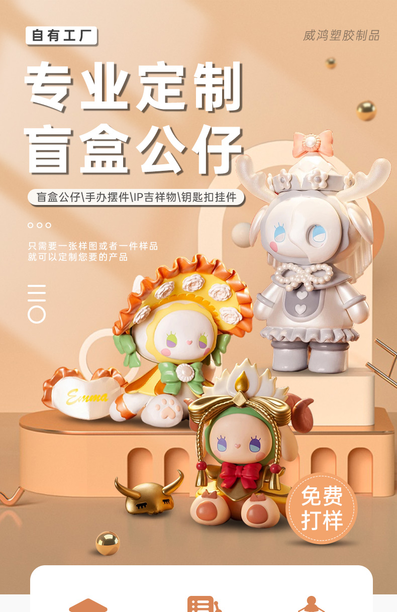 你好,歡迎訪東莞市堃鴻塑膠制品有限公司網站!主營:PVC公仔、盲盒手辦、搪膠公仔、滴膠鑰匙扣等塑膠公仔